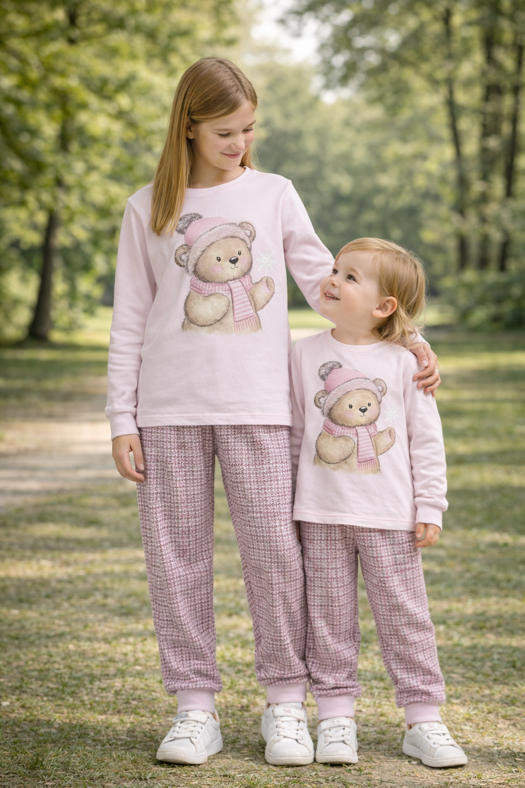 Delicadeza e aconchego para aquecer os dias frios com muito charme! O conjunto Winter da Livy traz uma proposta encantadora e feminina, composto por blusa em tom rosa claro com estampa frontal de ursinho vestido para o inverno, acompanhada de calça em padronagem xadrez suave em tons coordenados. Confeccionado em tecidos macios e confortáveis, o conjunto oferece bem-estar, aquecimento e um visual doce, ideal para o inverno das pequenas.